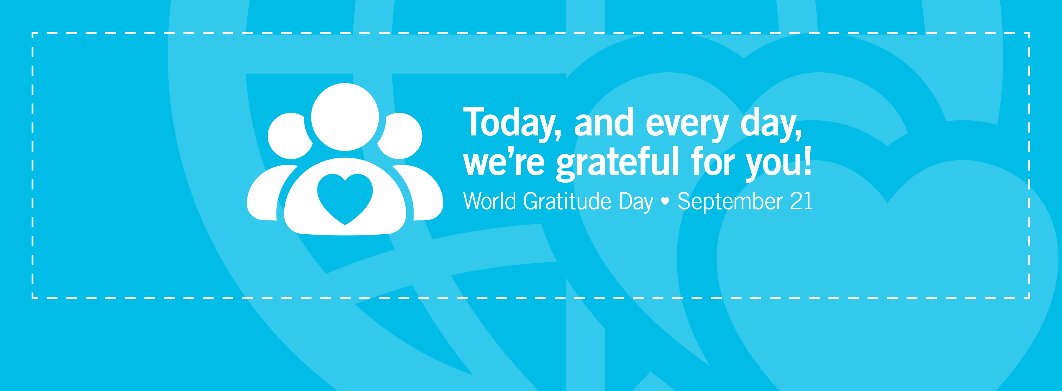 On Saturday, September 21 we plan to stop what we’re doing and take a moment to be grateful for you and everyone who contributes to our culture of gratitude. We invite you to join us and find something in that moment to be grateful for. It’s good for you!