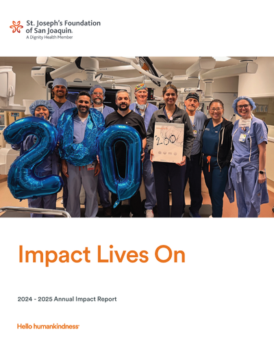 We are grateful for the continued financial support of our donors. Because of you St. Joseph's Foundation of San Joaquin raised over $8 million in 2024-2025. We hope to show you the incredible effect you have as part of something bigger when you give your gratitude, trust and support. Each gift, no matter the size, contributes to myriad possibilities to improve health for all.